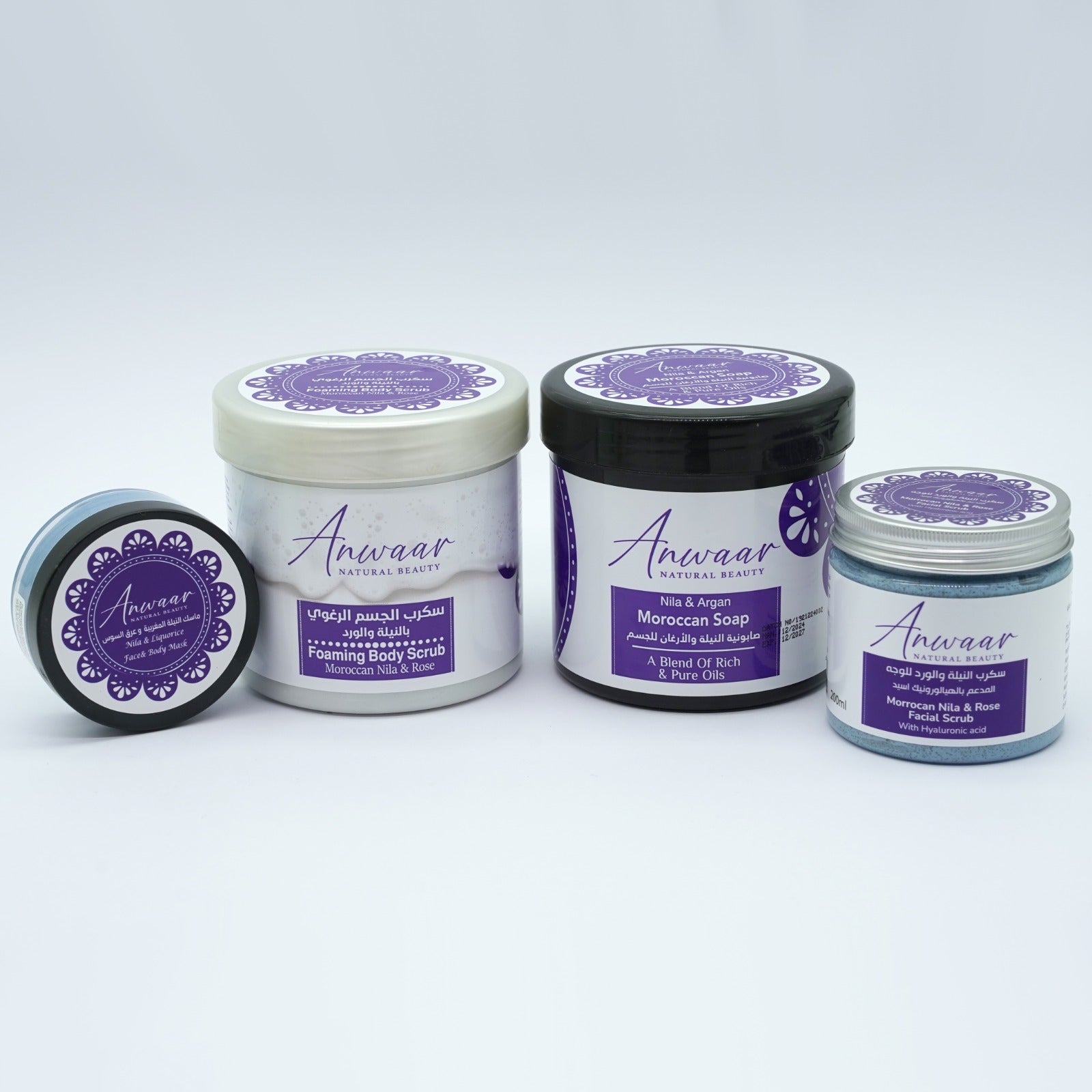 بكج النيلة المغربية الأصلية كامل متكامل في العناية ببشرة الوجه والجسم يتكون من :