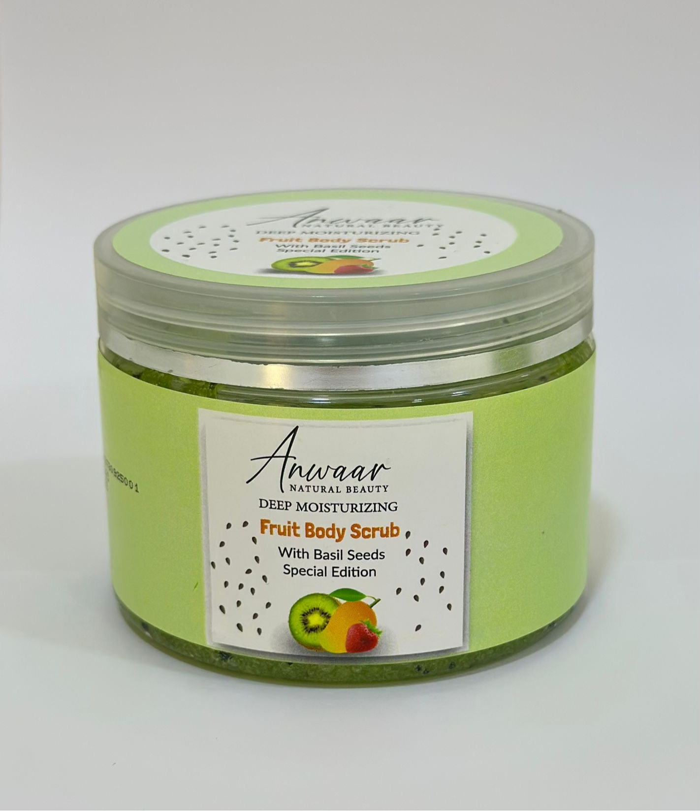 قوام مميز ونتائج ولا أروع من نعومة وترطيب ولمعان رهيب وتركيبة تتغلغل فيها عناصر طبيعية فعالة بتقشير بشرة الجسم مثل بذور الريحان