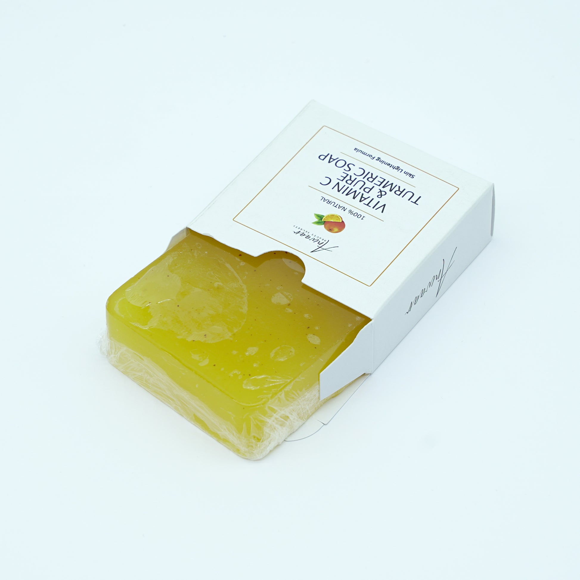 صابونة التفتيح والنضارة التي تعمل على تفتيح البشرة وتوحيد لونها وإزالة البقع والتصبغات والكلف وآثار الحبوب بالبشرة وتعمل على تفتيح المناطق الداكنة بالبشرة وخصوصاً منطقة حول الفم، كما تحتوي على الأحماض التي تفتح البشرة بشكل ملحوظ وخلاصات طبيعية مغذية ومعالجة بالإضافة إلى ڤيتامين سي النقي وعناصر ترطيب وتغذية للبشرة، تعمل أيضاً على تنظيف البشرة بعمق وخصوصاً المسام.