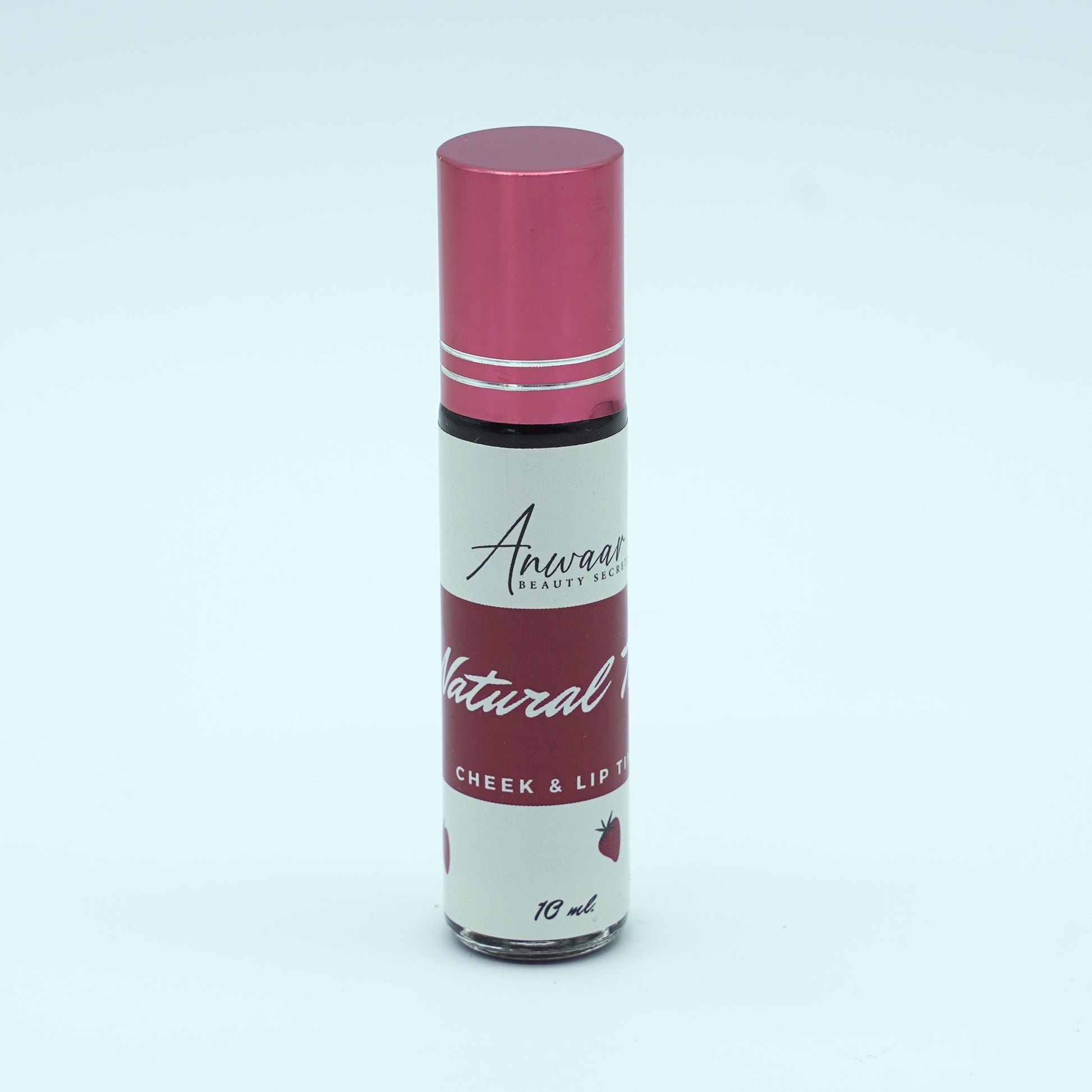 تنت الخدود والشفايف الطبيعي السائل بالفراولة، يتكون من مواد طبيعية نقية وعالية الجودة ويمتاز بدرجة ثبات عالية جداً ولون طبيعي وجذاب يمكنك التحكم بدرجة اللون كما تحبين.